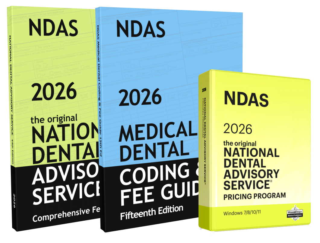 Please Note: This NDAS 2026 book and software are available December 2025 and the NDAS 2026 Medical Dental Coding & Fee Guide releases in February 2026. Online orders charge your credit card upon checkout. If you wish to order and have your credit card charged upon release, please call customer service 800-669-3337 or e-mail info@wasserman-medical.com